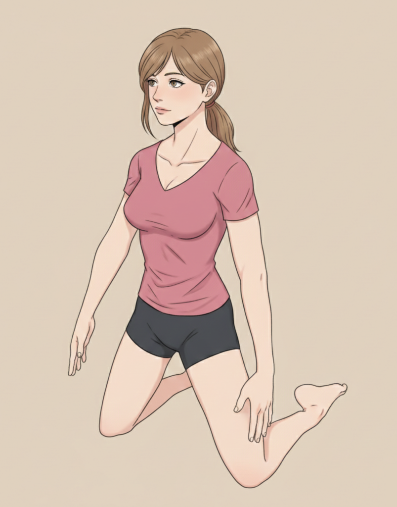 裸足になりイラストのような姿勢を取ります。